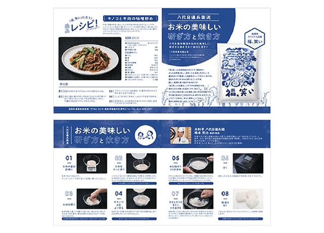 福島県では、「福、笑い」のブランドイメージを確立するために、統一デザイン米袋の使用を推奨しています。