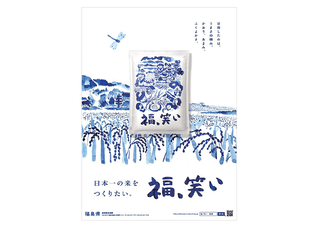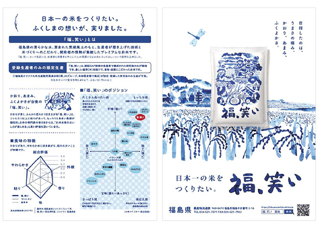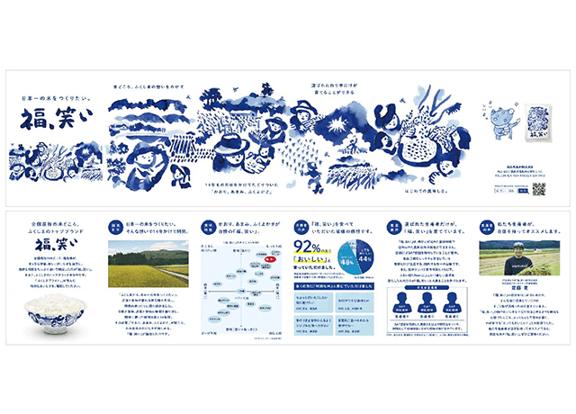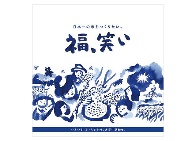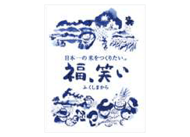 福島県では、「福、笑い」のブランドイメージを確立するために、統一デザイン米袋の使用を推奨しています。